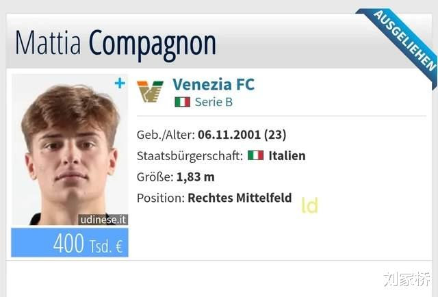 尤文二队中场小将孔帕尼翁已正式租借前往意乙威尼斯,23岁的他如今身价40万欧元,新赛季将随前尤文球员卡维利亚一起帮助威尼斯向着重回意甲的道路发起冲击。